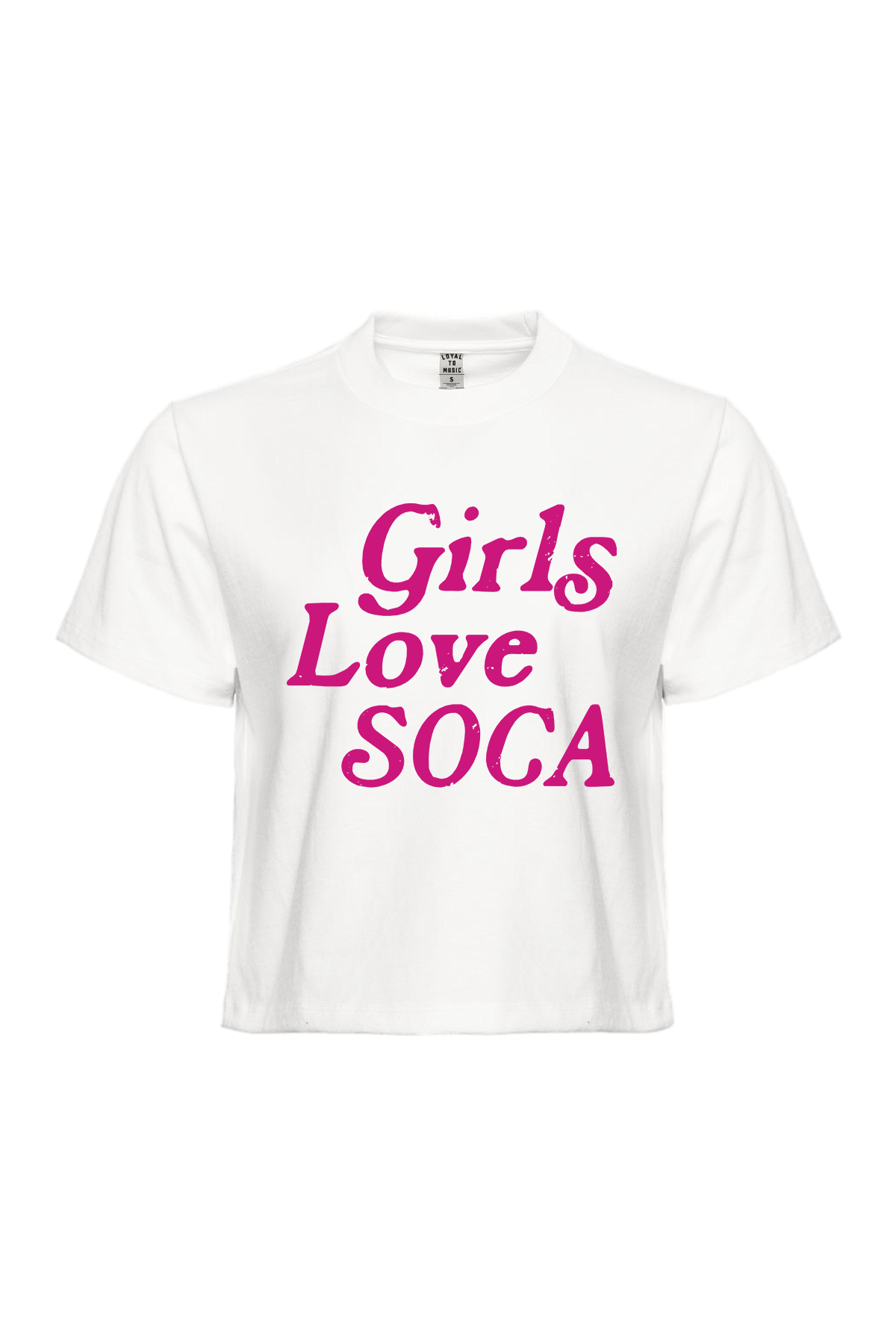 Show your love for the culture with the Girls Love Soca Tee, crafted for style, comfort, and durability. This Premium Boxy Crop White tee features bold pink typography that proudly declares “Girls Love SOCA” across the Front, making it a standout piece for fetes, festivals, and everyday wear.